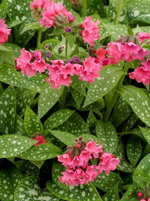 grupa roślin: BYLINYstanowisko: Wcześnie zakwitająca miodunka o kwiatach w intensywnym różowym kolorze. Kępa liści niewysoka, szerokorozłożysta o liściach z charakterystycznymi, srebrnymi plamkami na blaszkach. Kwiaty pojawiają się jeszcze przed pełnym rozwojem liści. Preferuje stanowiska półcieniste i cieniste, gleby stale umiarkowanie wilgotne, zawierające próchnicę pochodzącą z drzew liściastych. Dobrze czuje się posadzona w donicy, ale należy pamiętać o niewystawianiu jej na słońce.