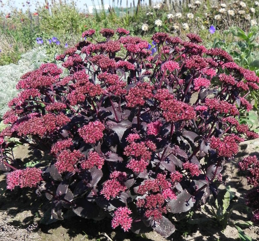 grupa roślin: BYLINYstanowisko: Jedna z najciemniej wybarwiona odmian rozchodnika. Liście i pędy już od początku rozwoju posiadają głęboki fioletowbordowy kolor. Kwiaty ciemno różowe, zebrane w baldachy odrobinę mniejsze niż innych wysokich rozchodników. Preferuje stanowiska słoneczne bo właśnie tam najładniej się wybarwia. Niewymagający co do gleby, dzięki gruboszowatym liściom dobrze znosi okresową suszę. Roślina miododajna i mrozoodporna.